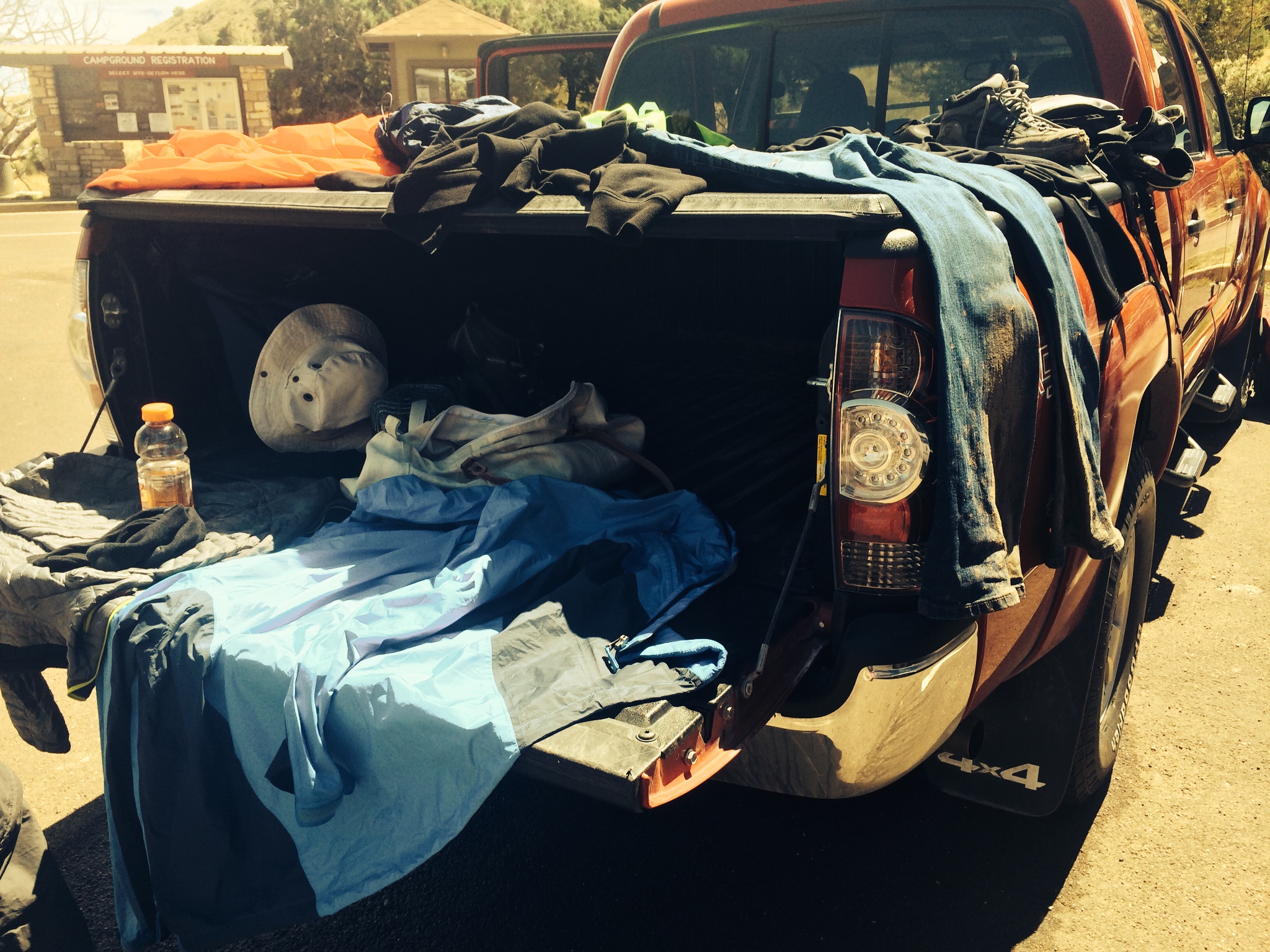The sun finally came out during our descent down the trail, and by the time we all got to the parking lot our clothes were drier. We changed into dry gear and spread out wet clothes in the sun to dry out.